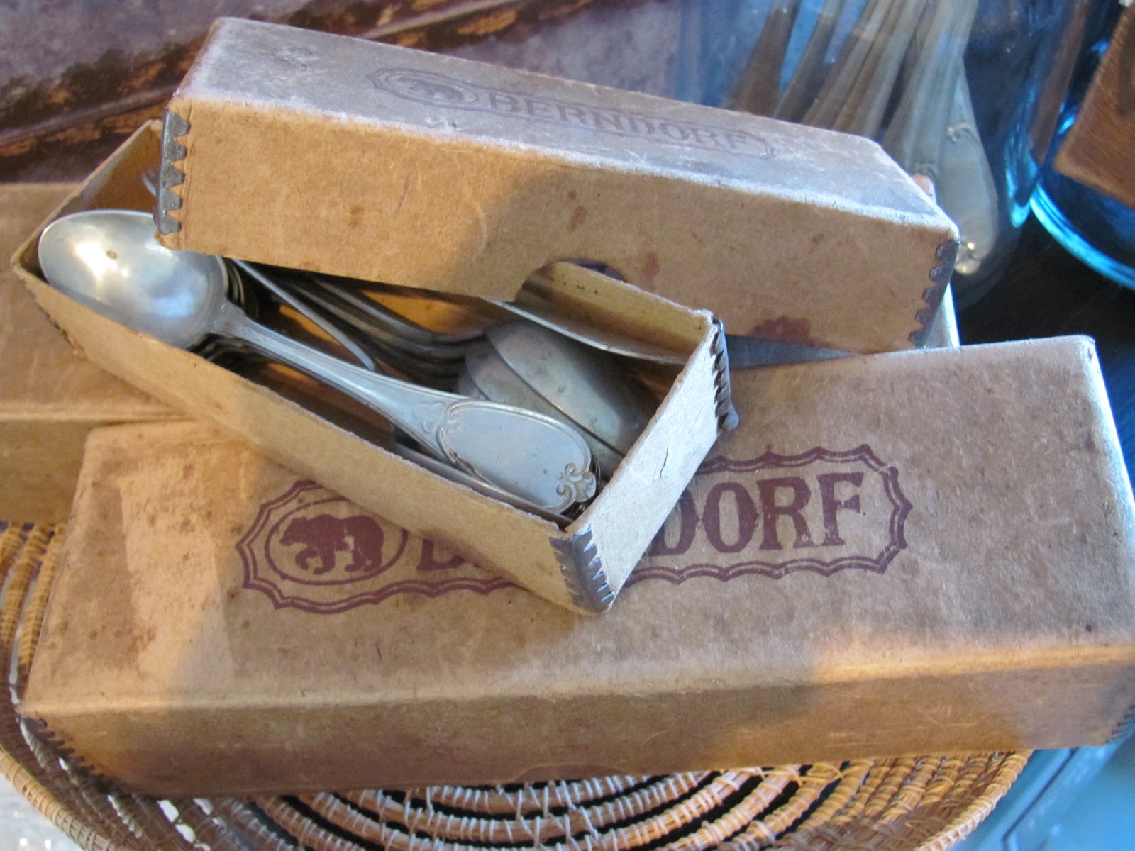 Viser dere noen bilder fra butikken med varer fra en av mine nye leverandører Who found Otto...Flott gammelt bestikk i sine orginale esker..Det er 12 stk kniver,gaffeler,skjeer og teskjeer...Knalltøft skilt fra Chic Antique og nydelige glasser fra Bloomingville..Også en ny leverandør her hos meg...Masse spennende varer er på plass og gleder meg til å åpne dørene på Fredag...